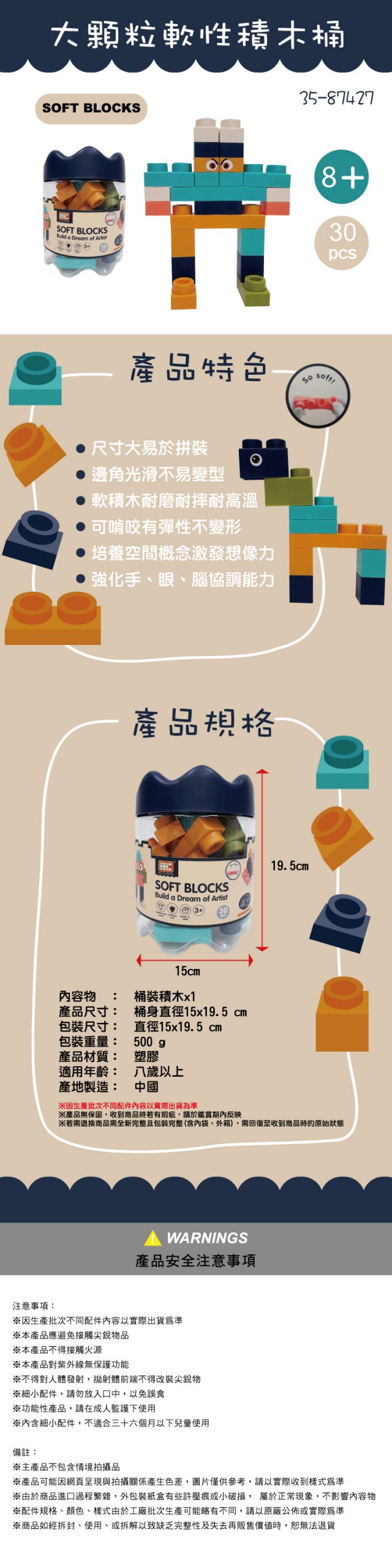 搶先評論了 “大顆粒軟性積木桶 早教玩具”
