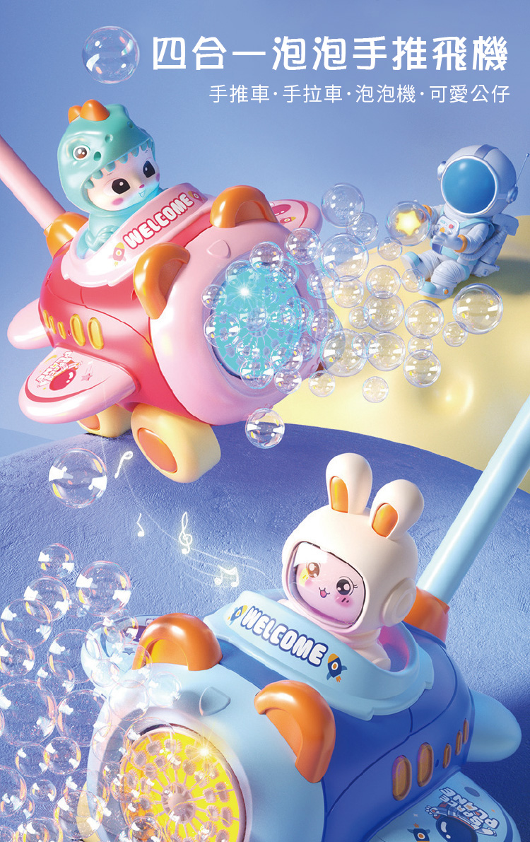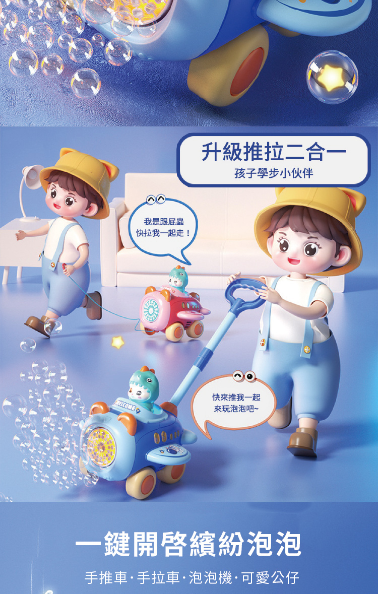 小恐龍泡泡手推飛機 泡泡槍 電動泡泡機