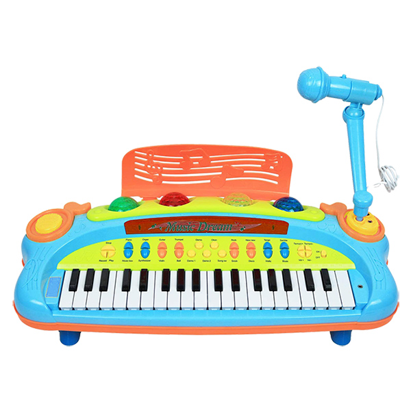 寶寶啓蒙早教樂器 孩子玩樂同時培養興趣自然學習 37鍵初學入門款 具有耳機孔和MP3播放功能 可彈奏8種樂器聲,打擊樂器模式多首示範曲 附卡拉OK功能,麥克風可邊彈邊唱 具錄音和播放功能
