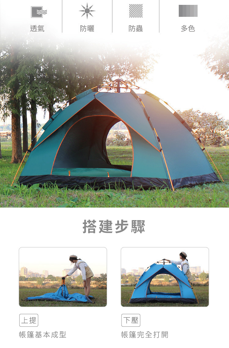 全自動秒開帳篷2-3人 顏色隨機 公園帳 野餐帳