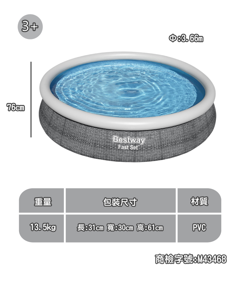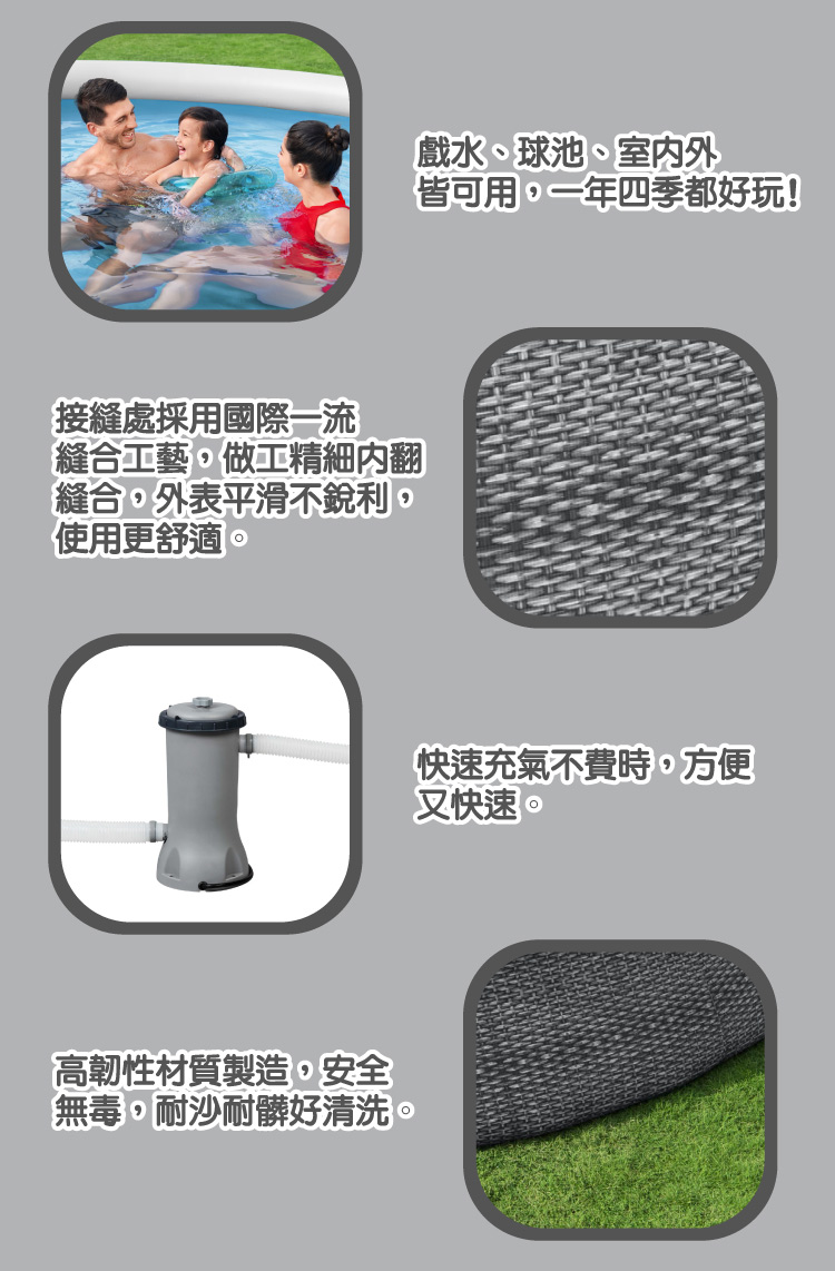 搶先評論了 “Bestway 快充泳池組”