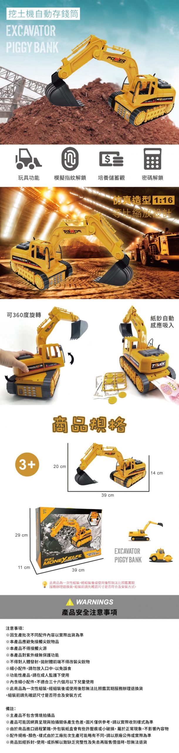 搶先評論了 “挖土機自動存錢筒 WF-3007 吸入式存錢筒”