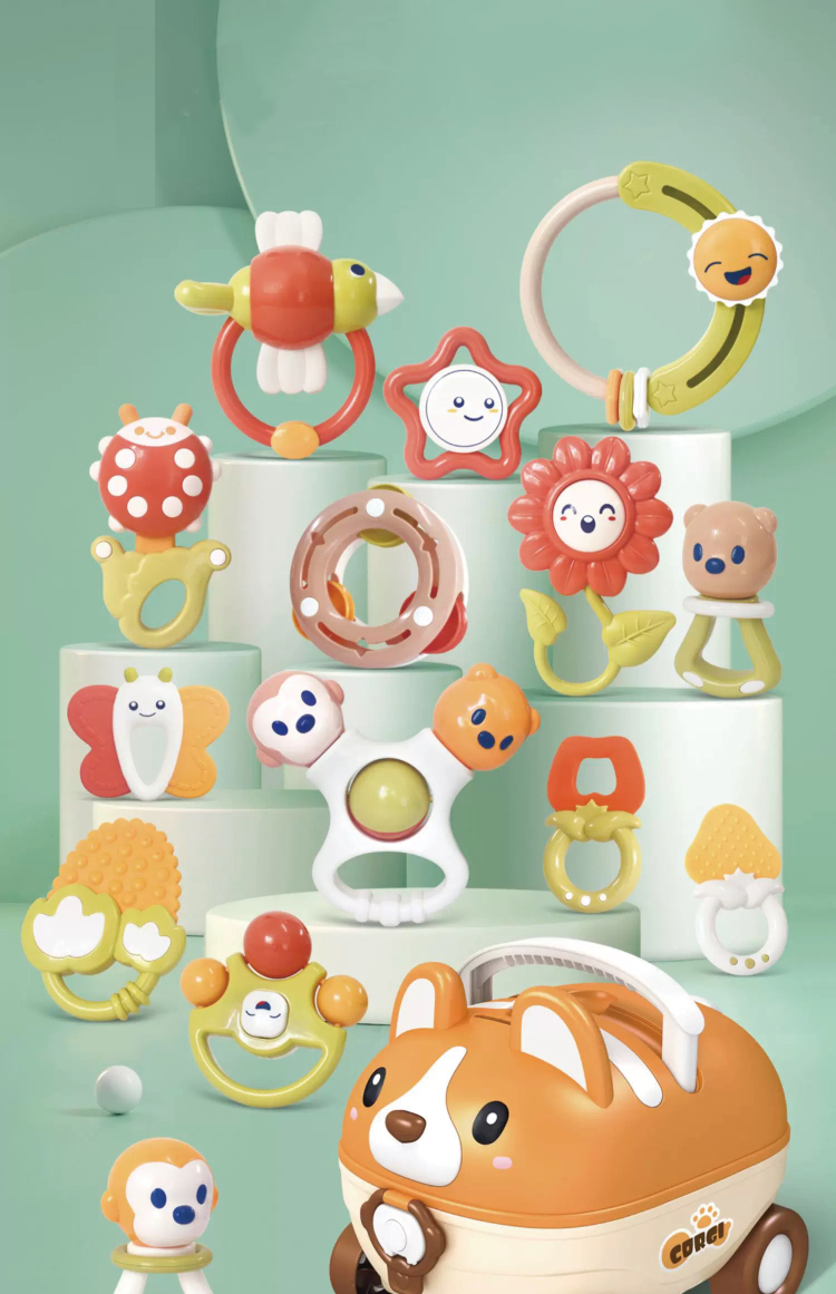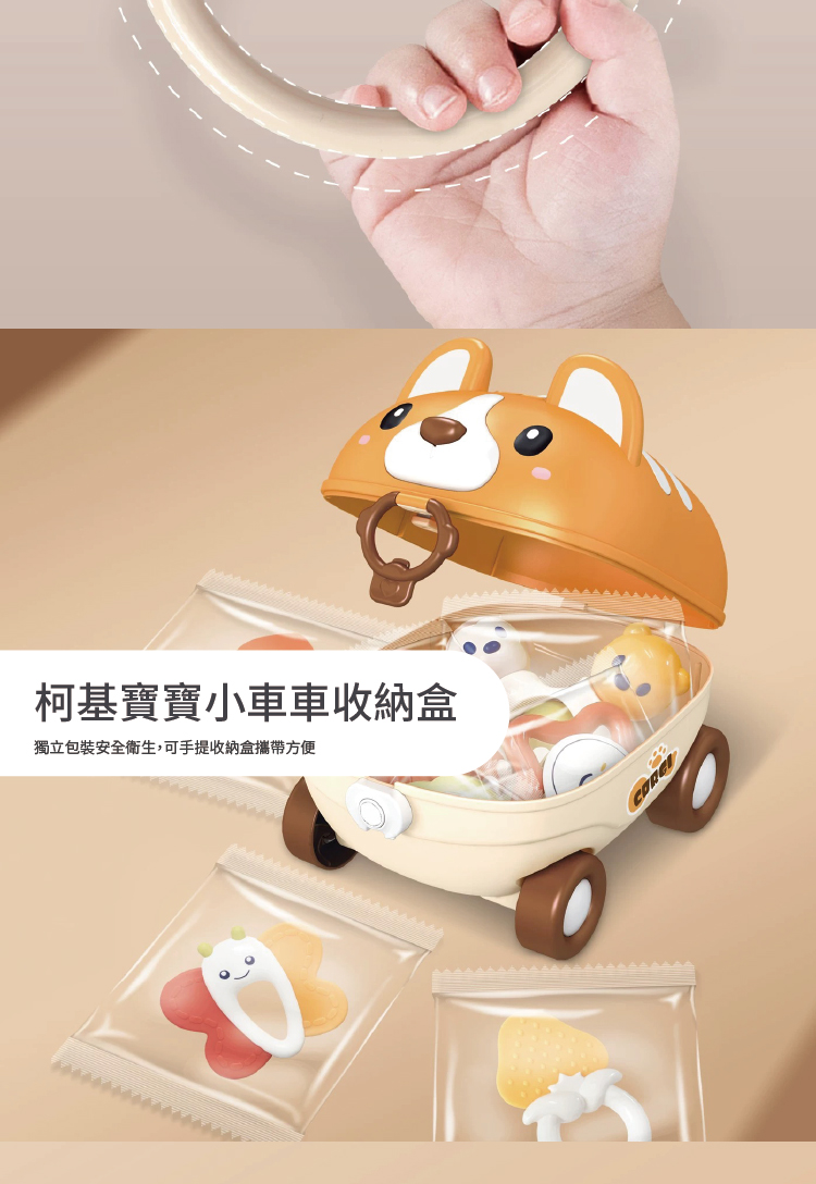 柯基寶寶手搖鈴固齒器 彌月禮盒 新生禮盒 玩具禮盒