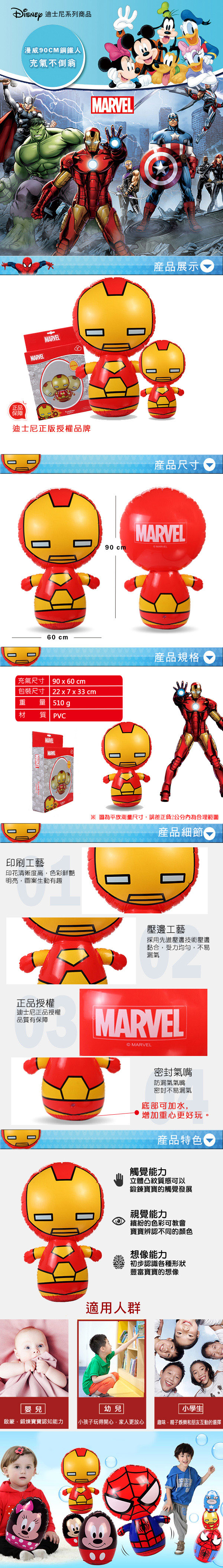 Marvel正版授權 超萌鋼鐵人造型,大人小孩都喜歡 材質柔軟有彈性,耐磨耐用不易壞 高韌性PVC材質製造,安全無毒 可訓練孩童反應力及協調性 超大超療癒,店面、居家裝飾好物