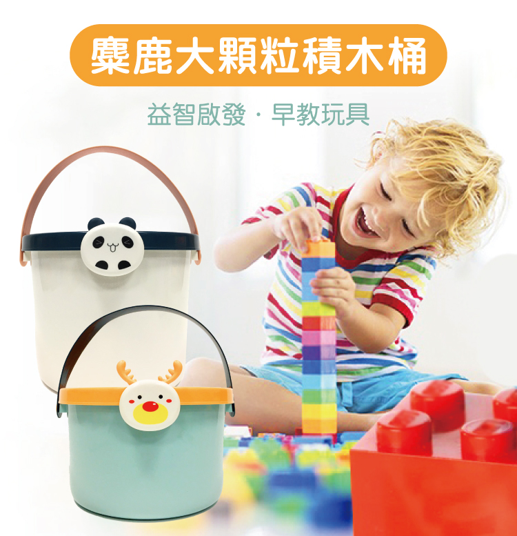 商品特色敘述: 熊貓桶裝造型小朋有禮物首選 專為兒童大積木尺寸易於拼裝 適合小朋友的最佳禮物 培養耐心與邏輯思考 可訓練手眼協調的能力
