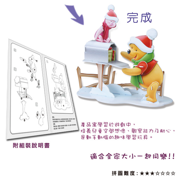 迪士尼DISNEY正版授權,趣味益智遊戲,不用使用拼裝工具,容易拼裝,美觀富有裝飾性,寓教於樂,產品寓學習於遊戲中,培養兒童空間想像、觀察能力及耐心,是動手動腦的趣味學習玩具。適合全家大小一起同樂