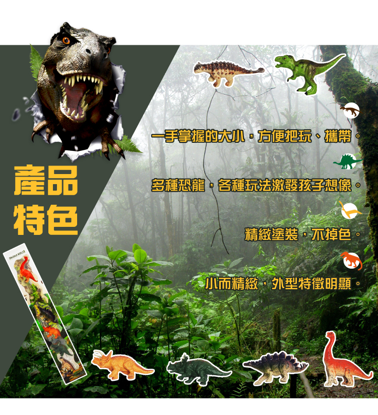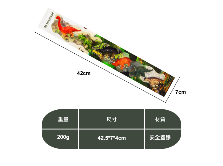 三角龍:8*2*3cm 甲龍:7.5*2*2cm 劍龍:8*1.5*4cm 暴龍:8.5*1.5.*4cm 雷龍:6*7*2cm