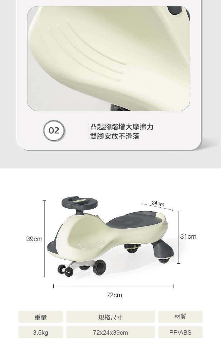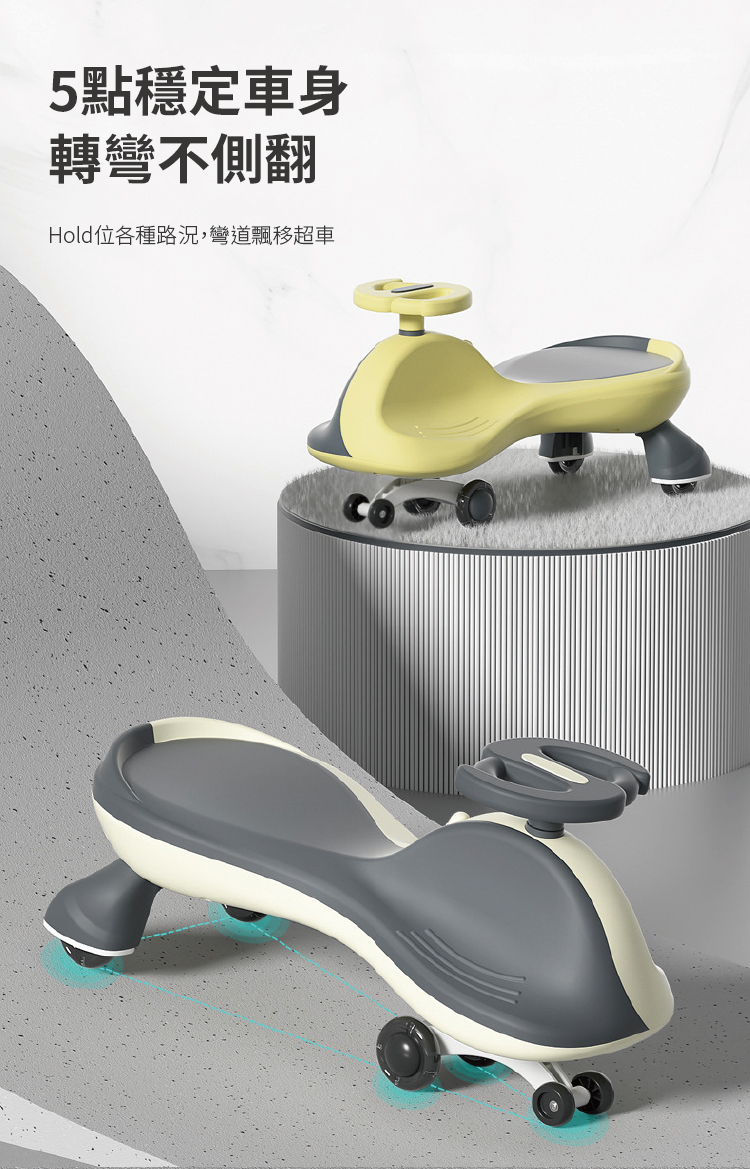 閃光輪雙色扭扭車 奶灰色 靜音輪 滑步車 搖搖車 平衡車