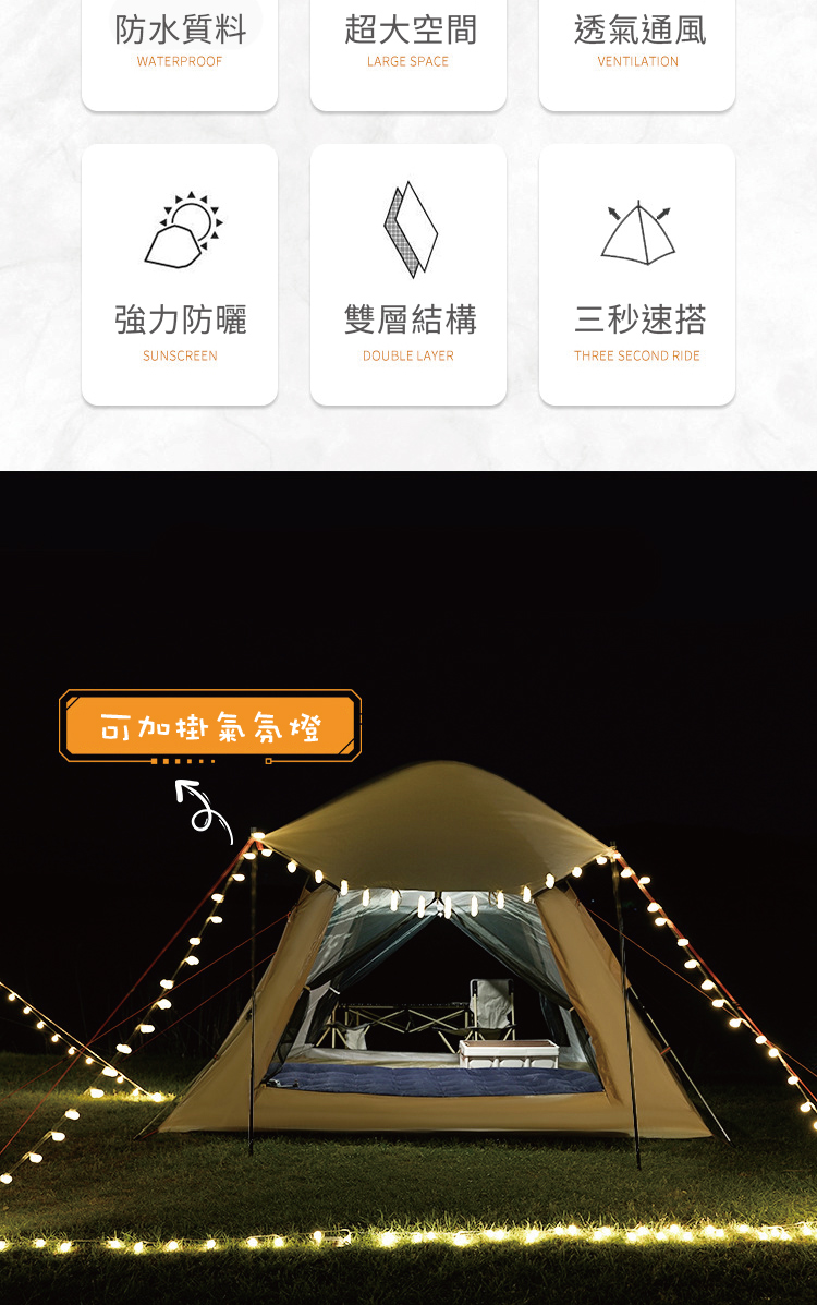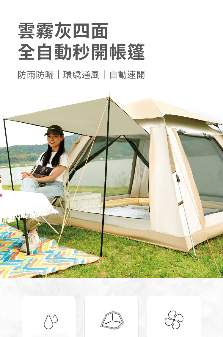 搶先評論了 “雲霧灰四面全自動秒開帳篷 3-4人 公園帳 沙灘帳”