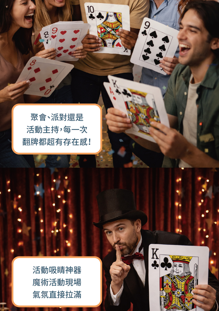老花救星,遠距離也清楚可見 手感紮實、不易彎折 花色鮮明、數字圖案一目了然 派對遊戲、親子桌遊、魔術表演、教學示範皆適用 操作簡單、娛樂性高 拍照、活動吸睛神器,活動現場氣氛直接拉滿
