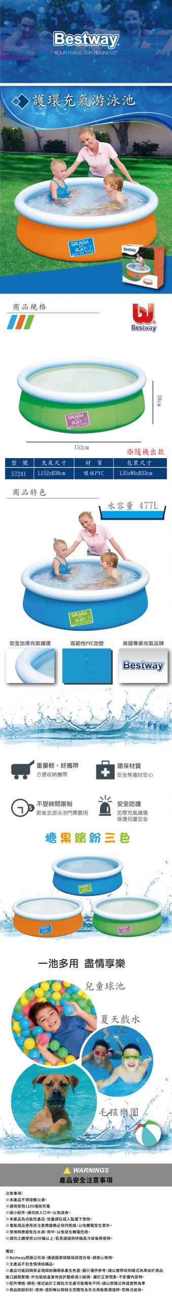 商品特色敘述: *水容量:477升 *炎熱天氣,輕鬆在家享受戲水樂趣 *加厚充氣護環,兒童保護更安全 *重量輕、好移動、易收納攜帶方便 *高韌性PVC材質製造,安全無毒,耐沙耐髒好清洗。 *接縫處採用流線型設計,平滑耐磨耐用