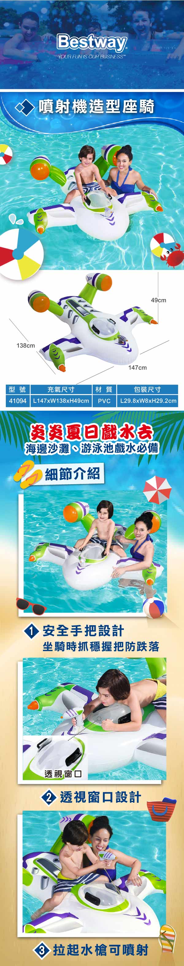 Bestway。噴射機造型充氣座騎41094