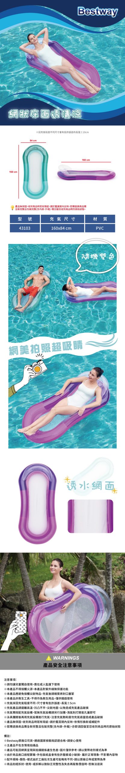 搶先評論了 “Bestway。日光浴水上充氣漂浮床 顏色隨機”