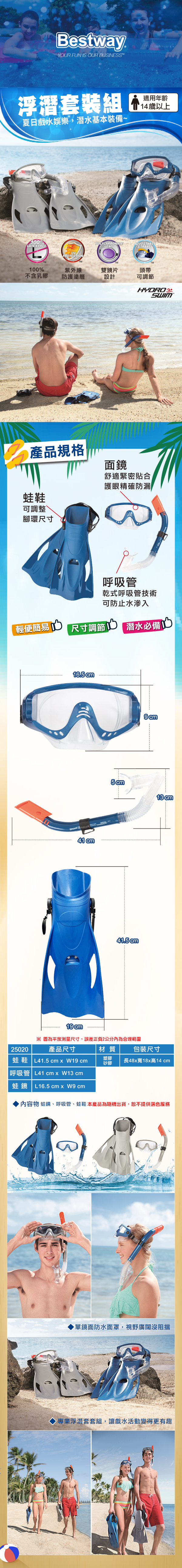 商品特色敘述: 親子同樂清涼一夏 蛙鏡、蛙鞋與呼吸管一次購齊 特選防過敏矽膠材質製造 單鏡面防水面罩,視野廣闊沒阻擋 專業浮潛套套組,讓戲水活動變得更有趣 讓孩子提早體驗浮潛樂趣