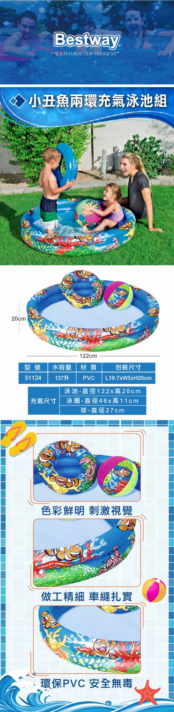 Bestway。海洋小丑魚兩環充氣泳池組