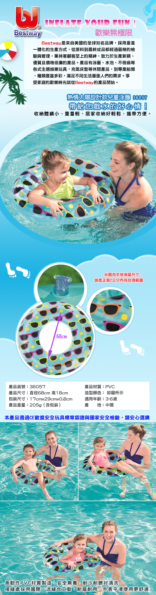 搶先評論了 “Bestway。熱情太陽設計款兒童泳圈”