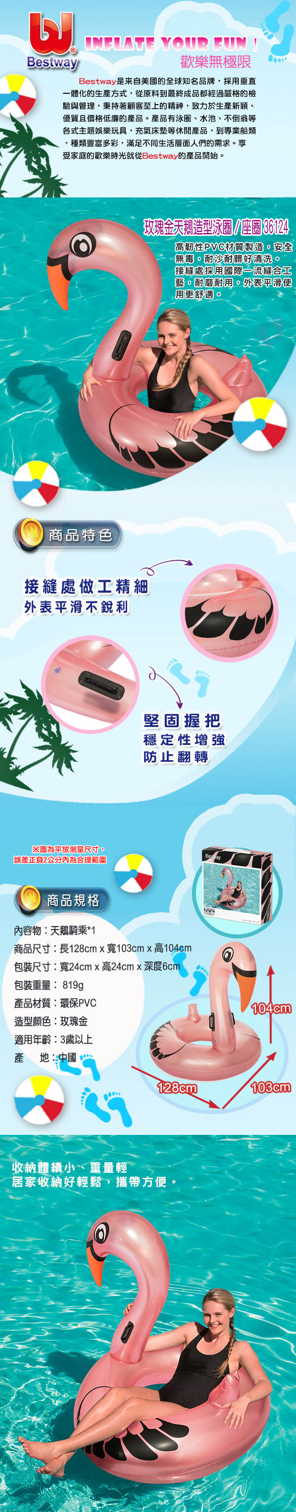 搶先評論了 “Bestway。玫瑰金天鵝造型泳圈/座圈36124”