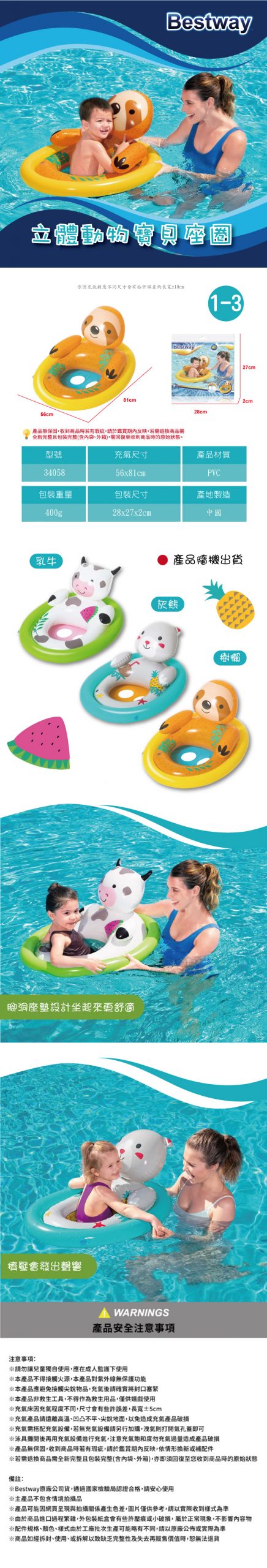 Bestway。立體動物寶貝座圈 嬰兒泳圈 34058