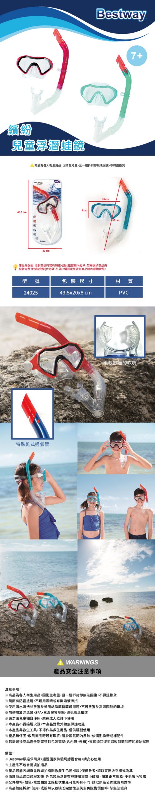 商品特色敘述: 繽紛雙色造型時尚感設計 柔軟舒適面罩緊密貼合臉部 可調節的頭帶 特殊的乾式通氣管技術可防止水滲入 柔軟舒適的呼吸管吹嘴