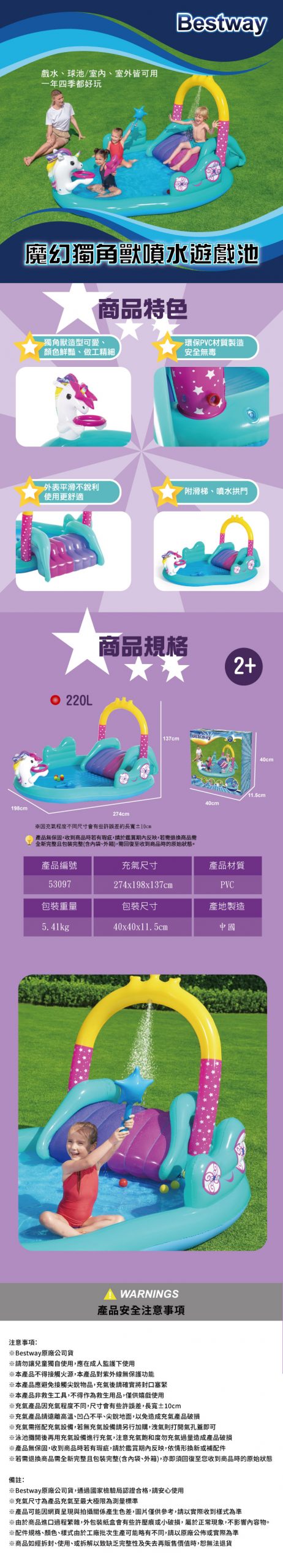 商品特色敘述: 附滑梯、噴水拱門 獨角獸造型可愛、顏色鮮豔、做工精細 外表平滑不銳利,使用更舒適 環保PVC材質製造,安全無毒 戲水、球池/室內、室外皆可用,一年四季都好玩