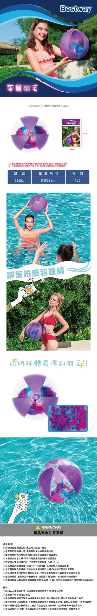 商品特色敘述: Bestway專業充氣品牌 華麗羽毛元素網美池吸睛必備 安全防漏充氣孔 高韌性PVC材質製造,安全無毒,耐沙耐髒好清洗 使用塑料柔軟有彈性,不易損壞