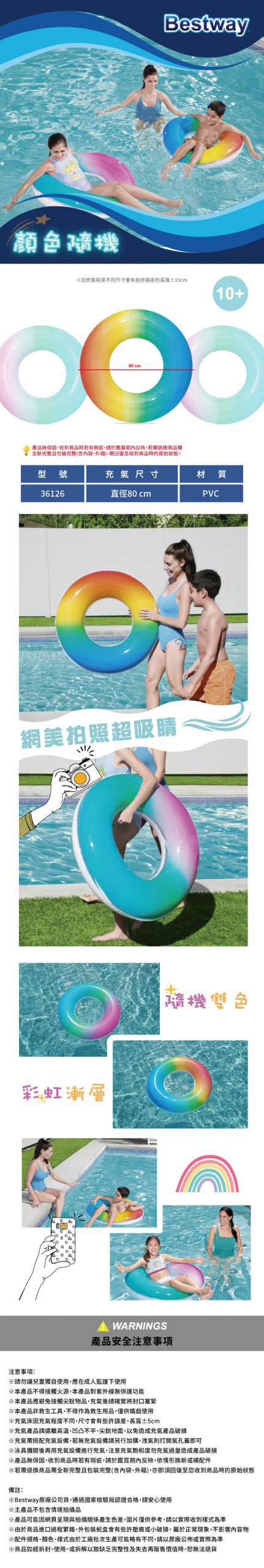 商品特色敘述: 親子同樂清涼一夏 絕美繽紛彩虹漸層,拍照打卡必備商品 環保PVC安全環無毒材質 防漏氣孔設計