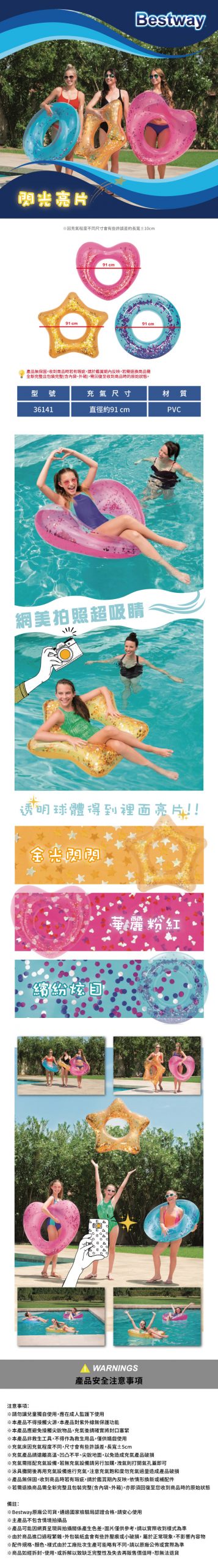 商品特色敘述: Bestway專業充氣品牌 炫彩亮片元素網美池吸睛必備 安全防漏充氣孔 高韌性PVC材質製造,安全無毒,耐沙耐髒好清洗 使用塑料柔軟有彈性,不易損壞