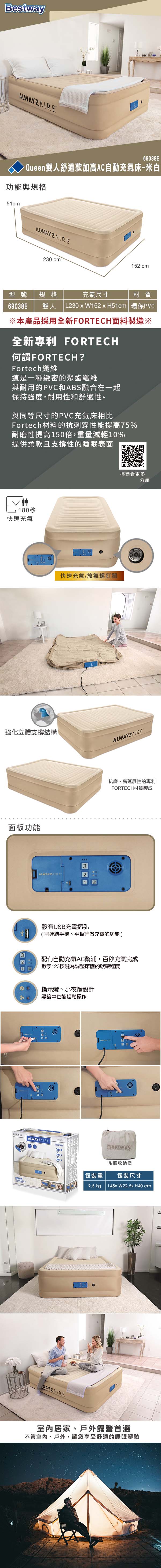 Bestway。Queen雙人舒適款新布面加高可調整AC自動充氣床-米白 69038E