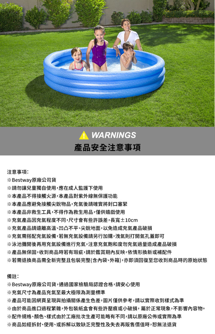 搶先評論了 “Bestway 亮彩充氣泳池 183x183x33cm 隨機出貨”