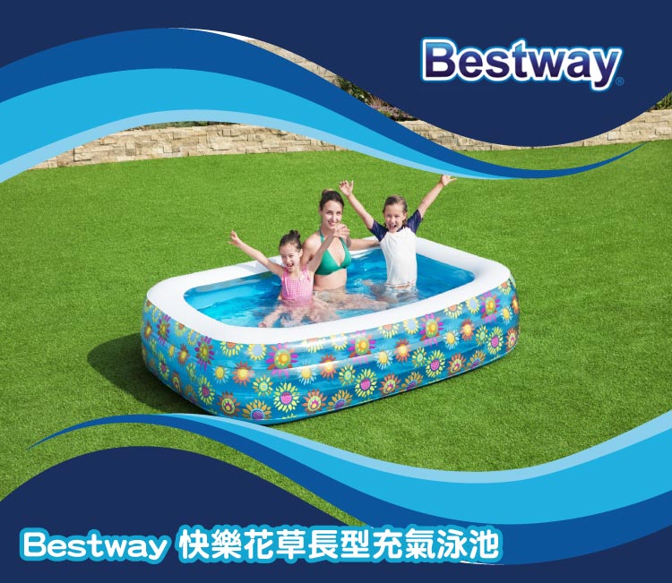 Bestway 快樂花草長型充氣泳池 168x168x56cm