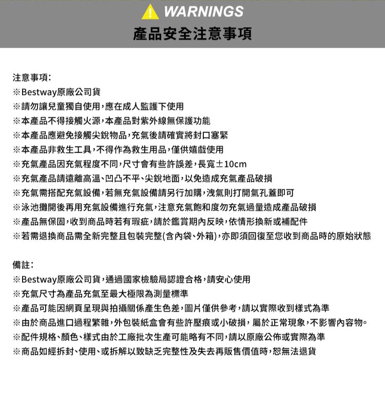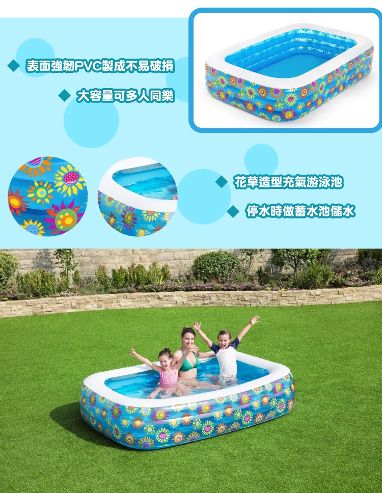 搶先評論了 “Bestway 快樂花草長型充氣泳池 168x168x56cm”