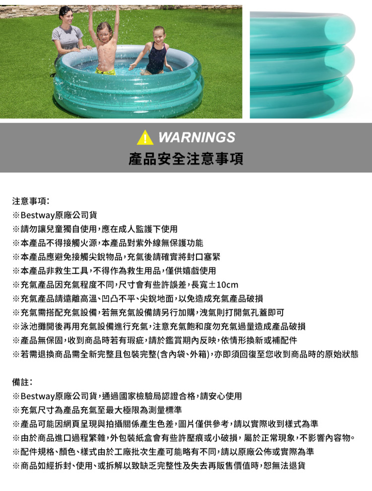 搶先評論了 “Bestway 果凍系充氣兒童泳池 170x170x53cm”