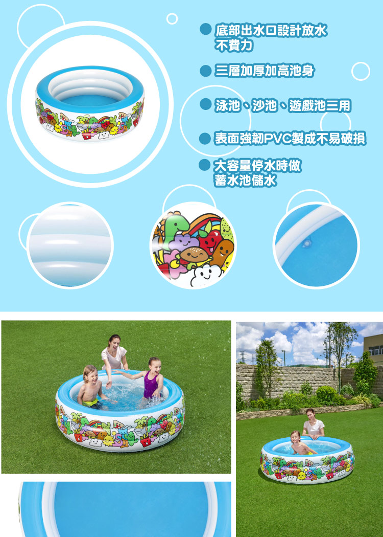 Bestway。繽紛彩色泳池-池底加厚款(中)