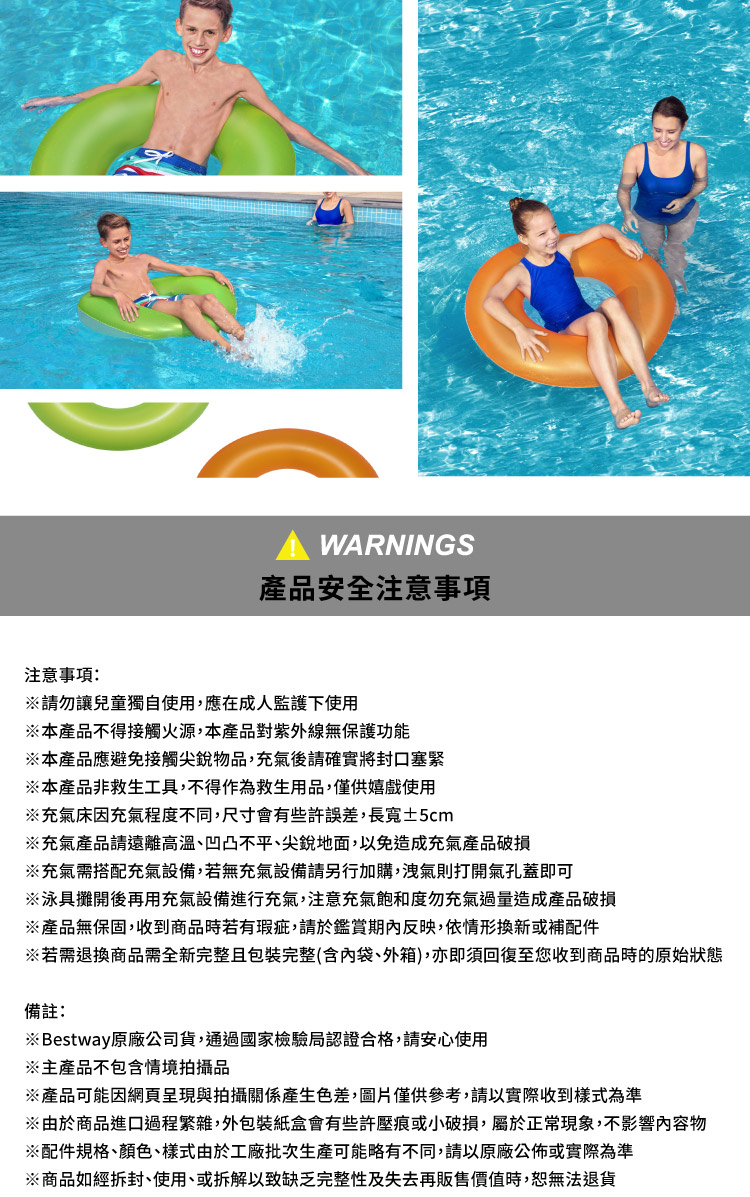 Bestway 珠光色36吋泳圈 顏色隨色出貨