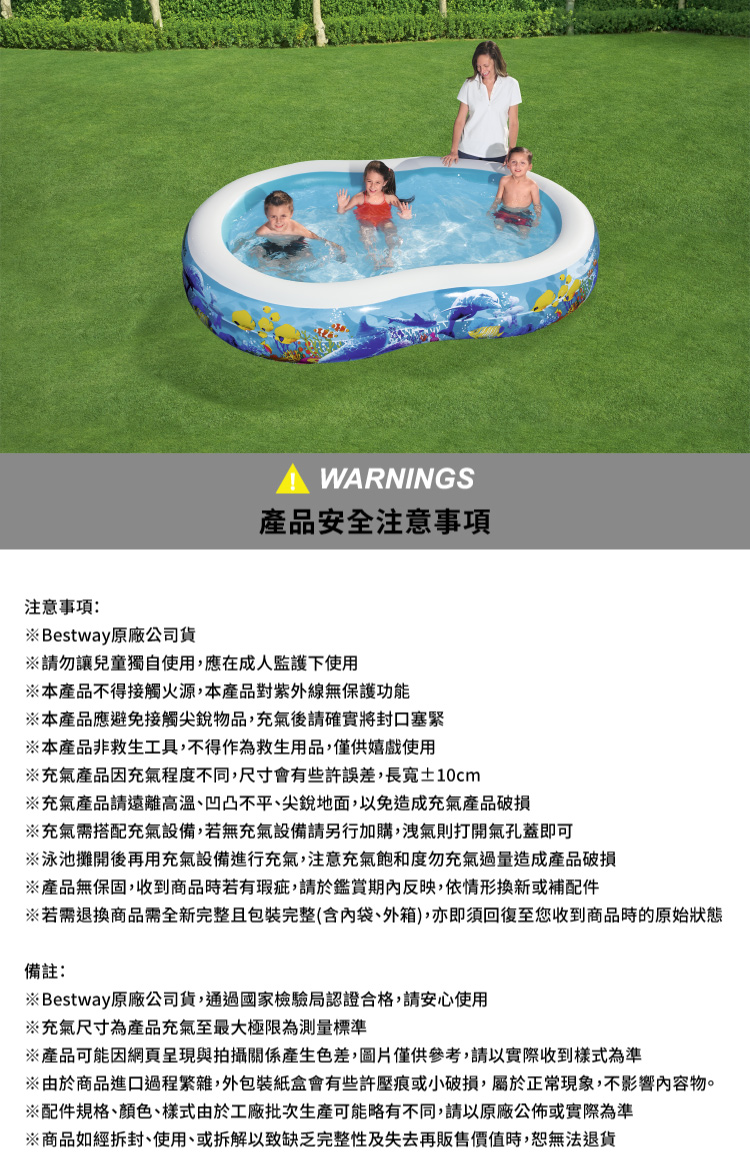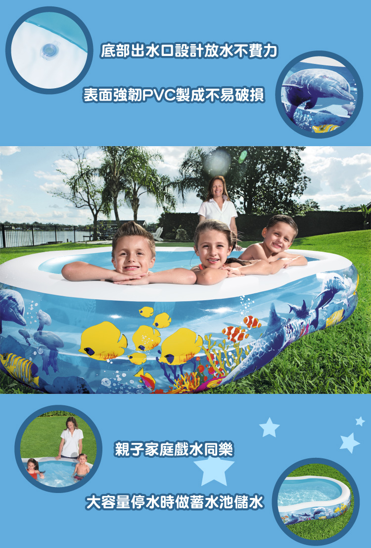 搶先評論了 “Bestway 海底王國充氣泳池 262x157x46cm”