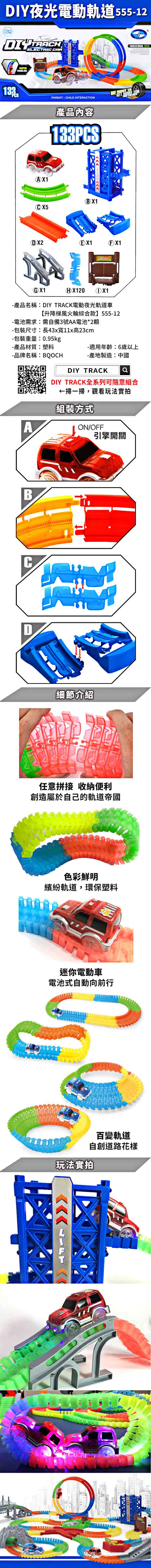 DIY TRACK電動夜光軌道車-升降梯風火輪綜合款555-12