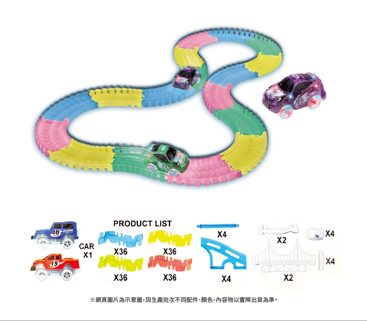 DIY TRACK電動夜光軌道車-升降梯風火輪綜合款555-12