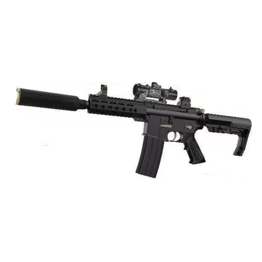 槍口仿噴火特效 手動單撃、自動連發射擊模式可切換 安全軟式凝膠彈 快拆式瞄準倍鏡 適合生存遊戲、戶外活動