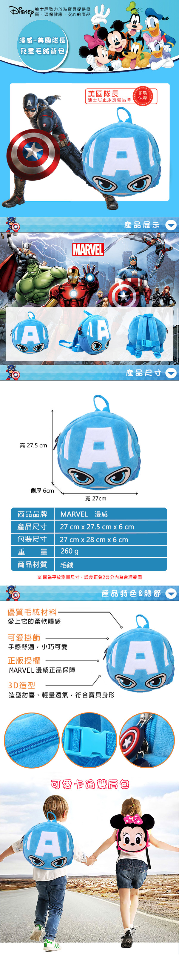 MARVEL漫威正版兒童毛絨背包-美國隊長 VHF85216-T